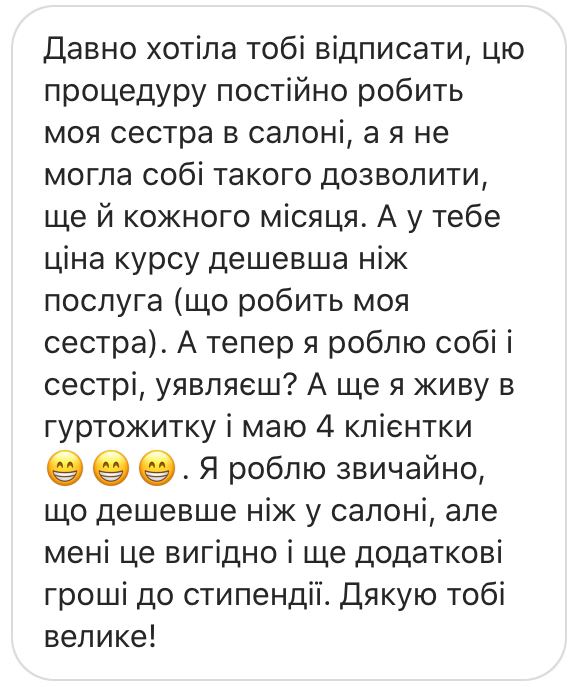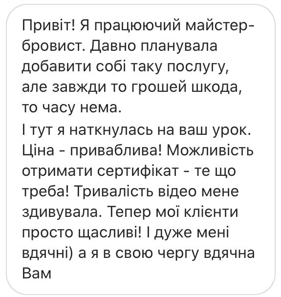 Вже більше 100 учнів придбали курс і тепер знають, як робити собі та близьким довготривалу укладку брів. Дізнайтеся і Ви